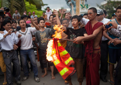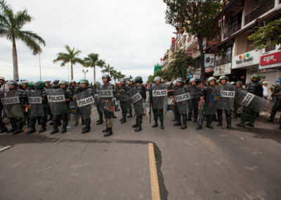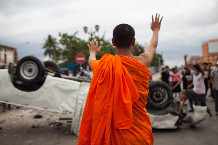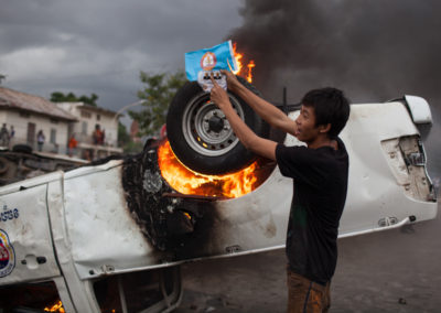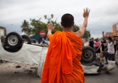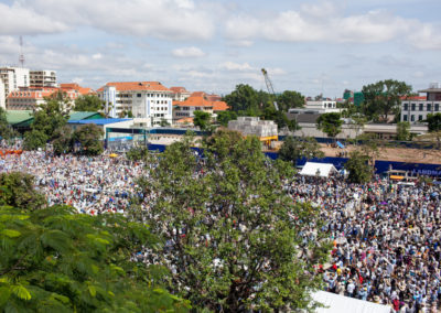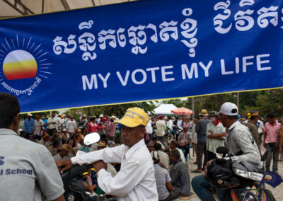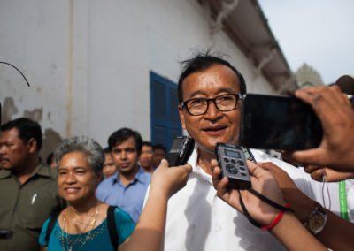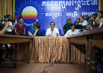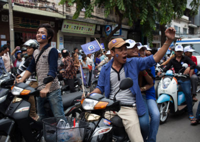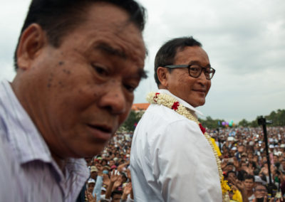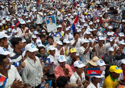 Cambodian opposition party leader, Sam Rainsy returned to his country just a week ahead of the July 28 general elections after years of self-imposed exile. A royal pardon granted him immunity from defamation charges drawn up against him in 2010. His party, Cambodia National rescue Party (CNRP), lost the election by a narrow margin, causing the CNRP and its supporters to cry foul. Mass protests ensued, and political stalemate in parliament left opposition seats empty. The following years would see the arrest and persecution of CNRP leaders, forcing Rainsy to again flee the country in 2016. He resigned as president of the CNRP and remains in exile. This series of photographs cover Rainsy’s return, the election, and the early days of the protest movement.